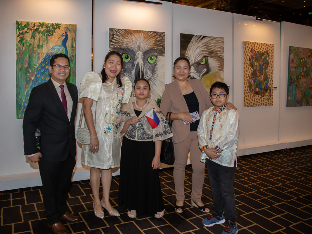 The exhibition’s grand opening was attended by several distinguished guests, including the Philippine Ambassador to Bahrain, H.E. Anne Jalando-on Louis, and her spouse, Dr. D. Gerard Joseph Louis. Ambassador Louis, Dr. Louis, and members of Filipino Creatives Bahrain warmly welcomed the attendees and provided a guided tour of the exhibition, showcasing the remarkable works of Filipino artists in Bahrain.